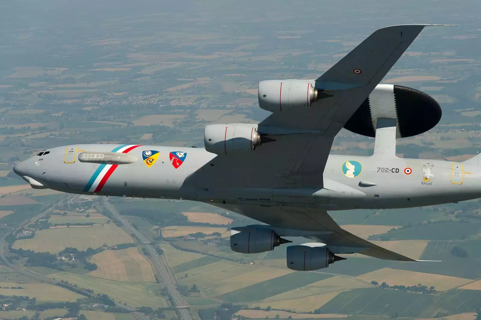 Avion AEW&C E-3F Sentry de l'Armée de l'Air et de l'Espace dans une livrée spéciale 50 000 heures de vol. © AAE