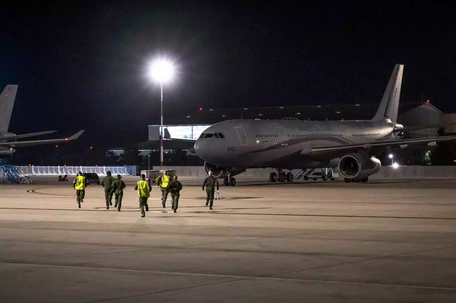 Scramble ! Les équipages des ravitailleurs A330 MRTT Phénix courent vers leurs avions dans le cadre de l'exercice stratégique Poker 2023-01. © @CEM_AAE