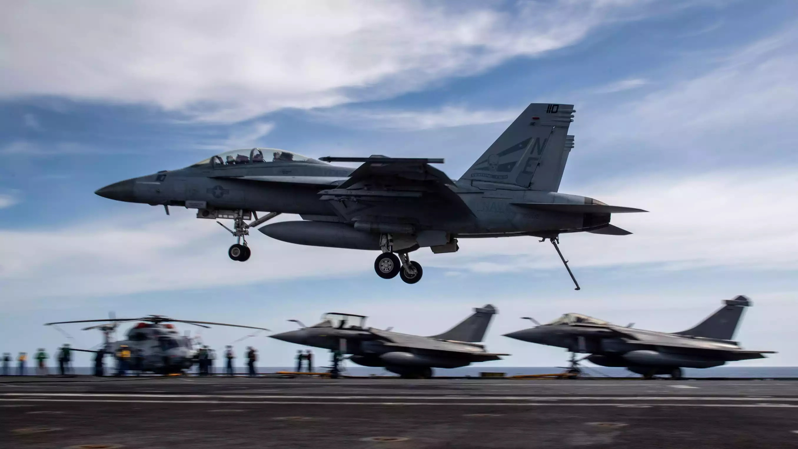 Appontage d'un F/A-18F Super Hornet de l'US Navy sur le porte-avions français Charles de Gaulle durant l'exercice Pacific Steller 25 (10 février 2025). © US Navy