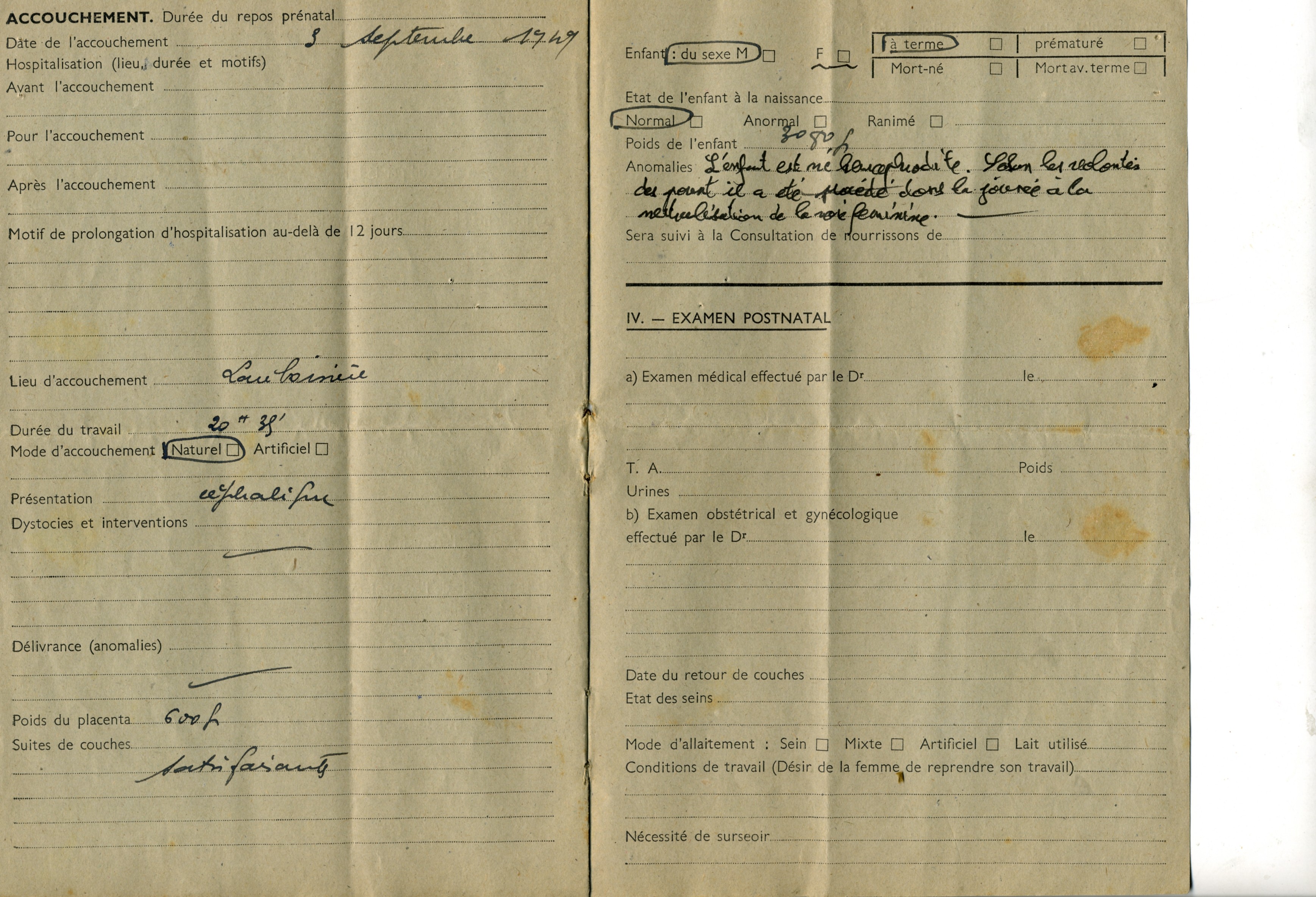 Et là : STUPEUR ! un gribouilli a peine lisible avec fautes, le chirrgien devait être c"secoué" apres un terrible opération sur un bébé qui n'avait pas un jour ! (je suis né le matin, et opéré dans ma première nuit). j'ai du relire 50 fois incapable de réaliser !